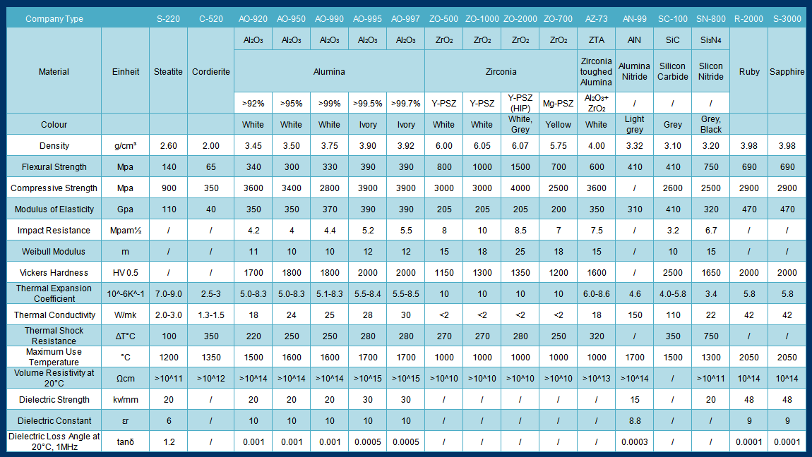 Alumina is the most mature of the engineering ceramics, offering excellent electrical insulation properties together with high hardness and good wear resistance but relatively low strength and fracture toughness. It is applied, where a high wear resistance, good corrosion resistance and mechanical strength are necessary. Due to its strong electric and dielectric properties it is often applied for high voltage applications and electronic products.